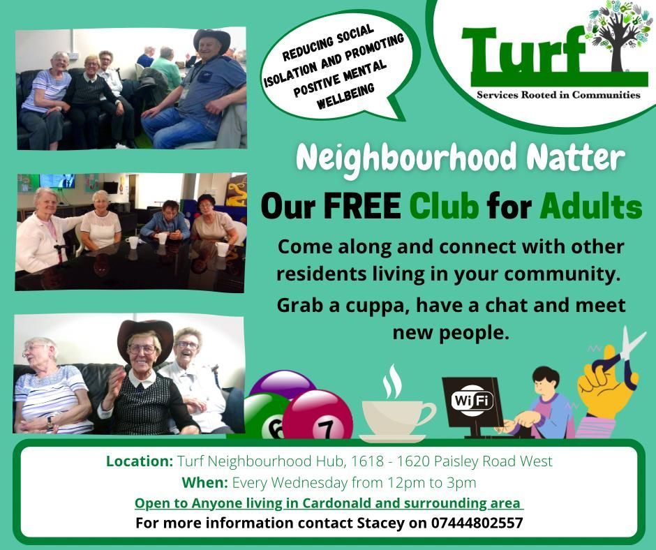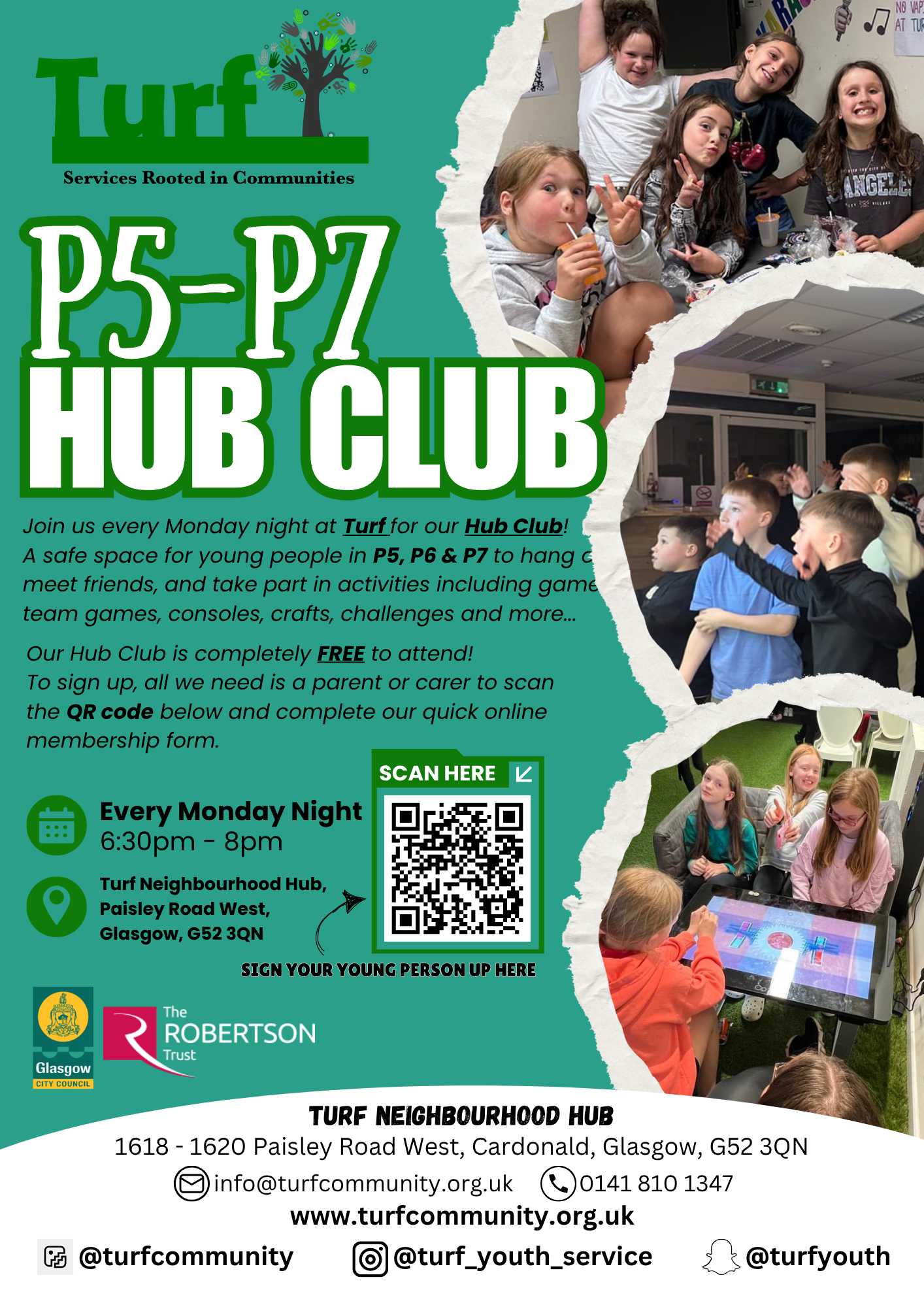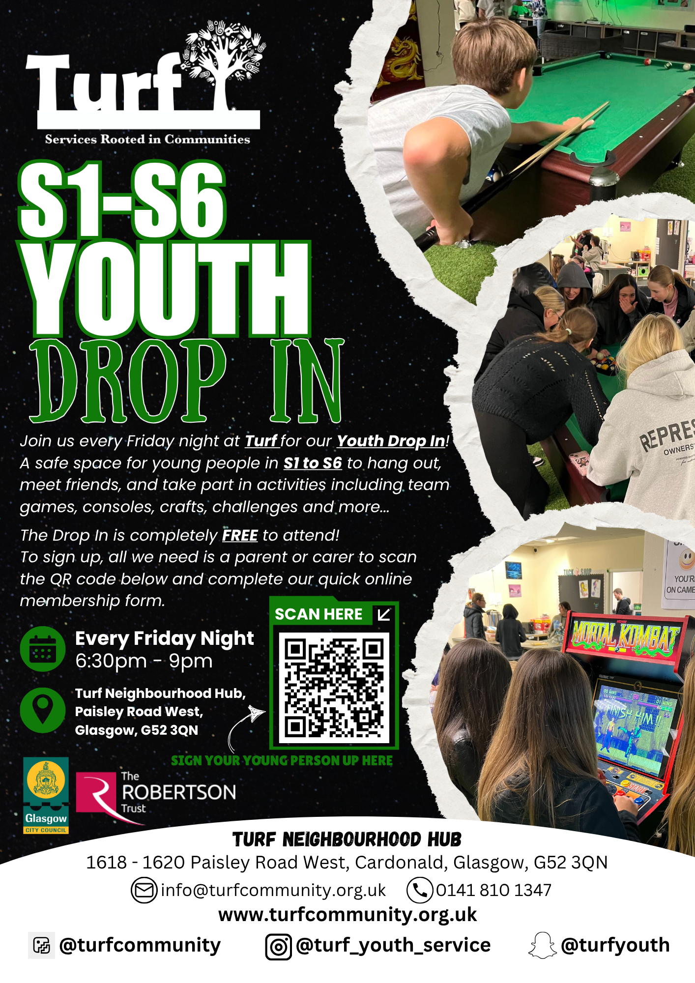 Each week at Turf we have a range of FREE groups and activities on offer for all ages living in Cardonald, Pollok and Surrounding areas.